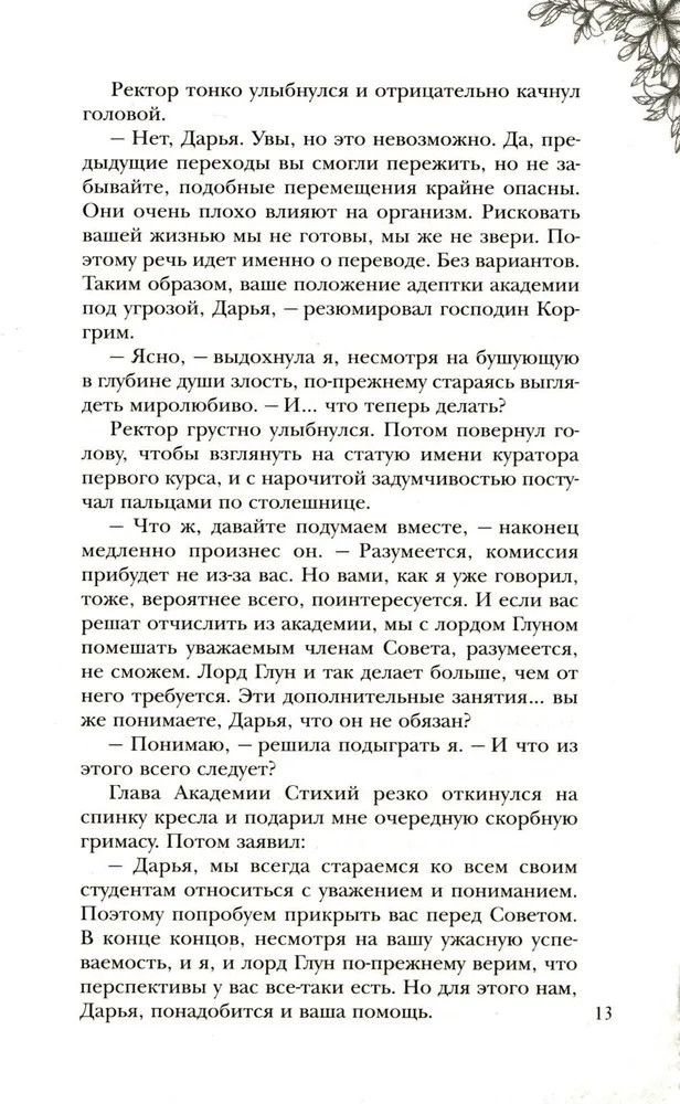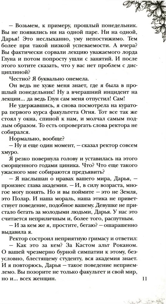 Серия: ЛитРес: Фэнтези Неприятности в Академии Стихий, разрастаясь как снежный ком, так и норовят рухнуть мне на голову. Казалось бы, только-только стали налаживаться отношения с сокурсниками, как возникла новая проблема — кто-то всеми силами пытается уничтожить Каста. Ну и меня заодно, ведь я, ино-мирянка Дарья Лукина, считаюсь девушкой этого пижонистого короля факультета. Но ужаснее всего то, что среди главных подозреваемых — куратор нашего курса Эмиль фон Глун. Мужчина, сны о котором и... с которым не дают мне покоя. Загадочный и пробирающий до мурашек. Но даже окажись он врагом, я справлюсь. Ведь я — девушка с Земли, и я не сдаюсь! |