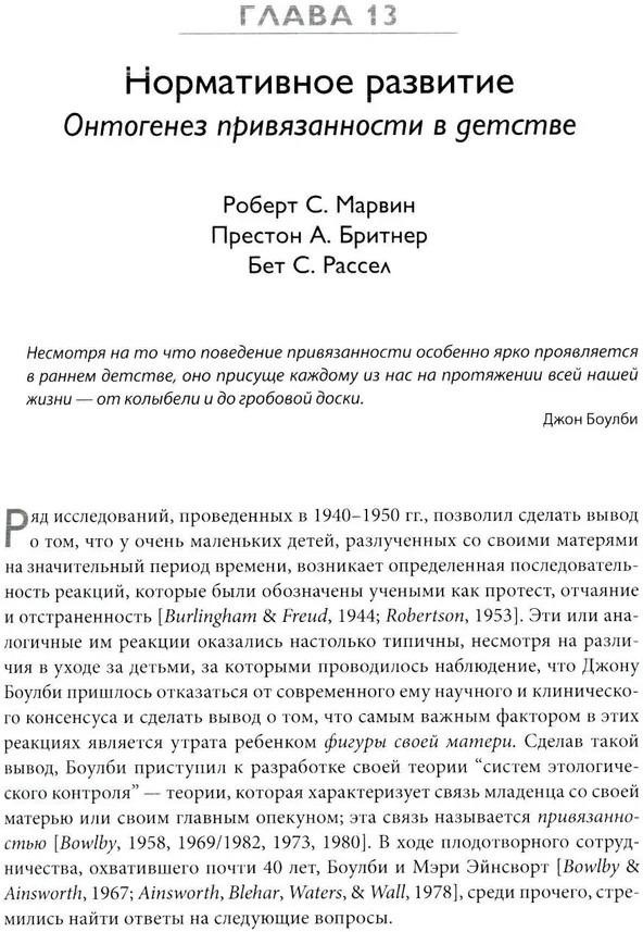 В этой книге, которая по праву считается одним из лучших учебников по теории привязанности, изложение теории удачно дополняется описанием внедрения передовых достижений в клиническую практику. Ведущие ученые-психологи, объединившиеся в коллектив соавторов, рассказывают об истоках и развитии теории привязанности, излагают биологическую и эволюционную точки зрения на формирование привязанности, а также раскрывают роль процессов привязанности в человеческих отношениях, в том числе в отношениях между родителями и детьми и в романтических отношениях. В книге приводятся обзоры типичных интервенций, ориентированных на привязанность и предназначенных как для детей и подростков, так и для семейных пар. Авторы глав рассматривают передовые методы оценки привязанности и анализируют доступные терапевтические инструменты и протоколы. |