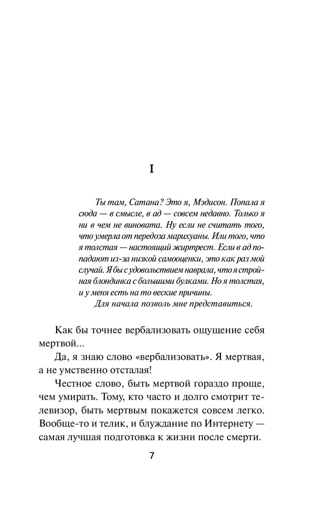 В последнее время я очень много читаю. Но это лучшая книга, которую я читал. В этой книге описан АД. Там были все Гитлер, Нэнси Спанджен, Сид Вишес и даже Курт Кобейн. Содержание на 5. Качество самой книги на 4.