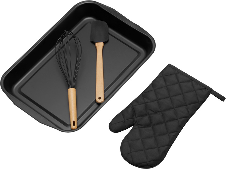 Кондитерский кухонный набор «Biscotti» незаменим на кухне любого кулинара. Большая форма для запекания отлично подойдёт для любых запеканок и пирогов, — их точно хватит на большую семью! Венчик и лопатка изготовлены из букового дерева — очень прочной и долговечной древесины, и пищевого силикона, который не впитывает жир, не царапает поверхности, а также легко моется! Приборы удобно ложатся в ладонь, обеспечивая комфорт при приготовлении. Варежка с одной стороны имеет гладкую поверхность, которая позволяет брендировать её термотрансфером. |