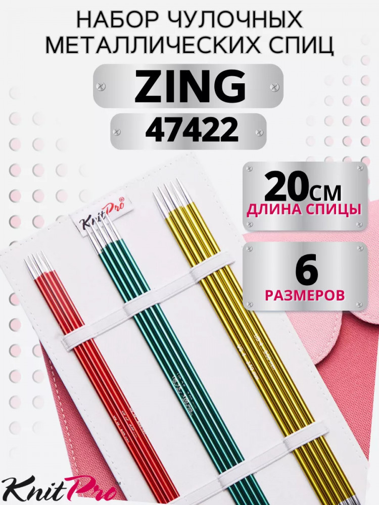 Набор металлических чулочных спиц «KnitPro Zing»-20%