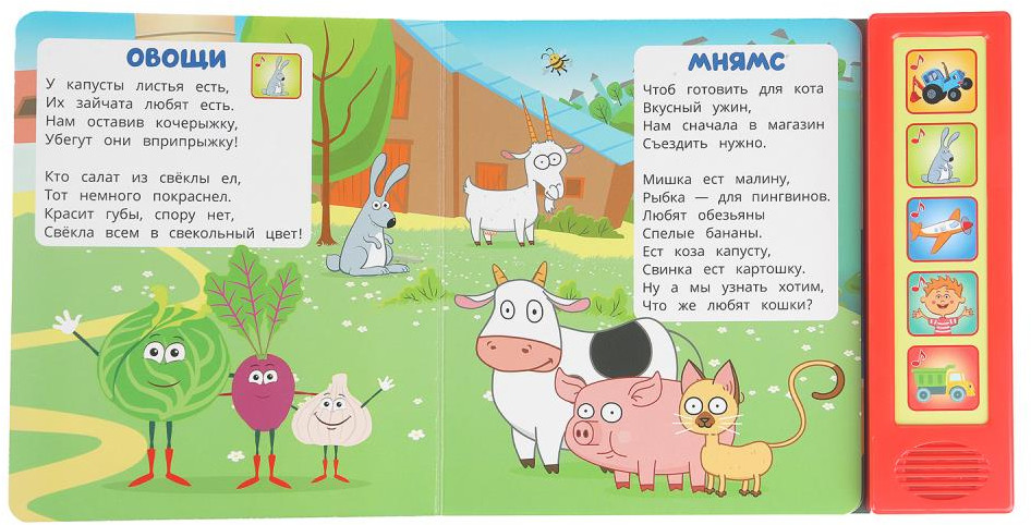 Серия: Синий трактор Музыкальная книга «Синий Трактор. Песенки из любимого м/ф» ТМ «УМка» станет отличным подарком для маленького любознайки. Малыш с удовольствием будет листать плотные страницы, рассматривать яркие иллюстрации, нажимать на звуковые кнопки и слушать весёлые песенки из известного мультфильма. Он легко освоит включение звука: по нажатию на кнопку звук включится, при втором нажатии выключится и т.д. Книга сделана из плотного картона, поэтому родители могут не опасаться, что ребёнок порвёт странички. Благодаря удобному формату книгу можно взять с собой в путешествие. |