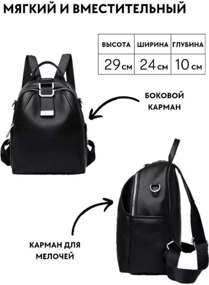 Рюкзак — стильный и практичный аксессуар, который идеально подходит для городских прогулок и повседневного использования. Изготовленный из мягкой экокожи, он сочетает в себе долговечность и современный дизайн.