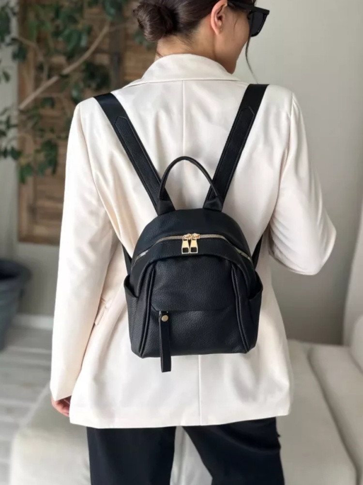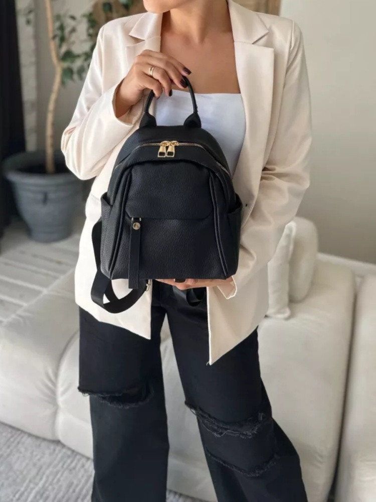 Рюкзак женский маленький кожаный подходит для городского стиля, повседневных прогулок, пляжа и путешествий. Компактный и вместительный, оснащён отделениями и множеством карманов: спереди карман на молнии для мелочей, по бокам кармашки для бутылки воды или зонта, на спинке потайной карман-антивор на молнии. Центральное отделение содержит два кармана на молнии и два открытых для документов и карт. Изготовлен из водонепроницаемой премиум экокожи, защищает вещи от дождя и снега. Минималистичный дизайн в молочном и бежевом цвете подчёркивает стиль, делает рюкзак универсальным аксессуаром. Подходит для девушек, подростков, студентов и женщин разных возрастов, станет удачным подарком на праздники.
