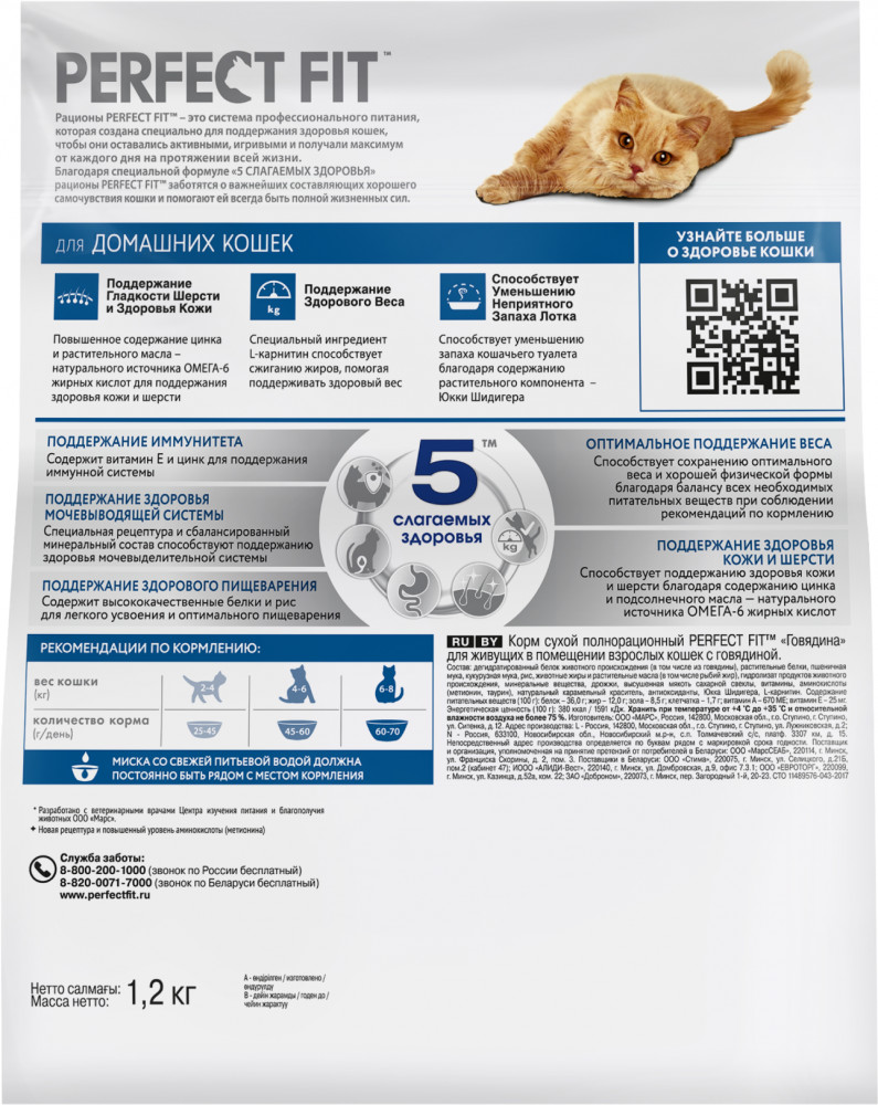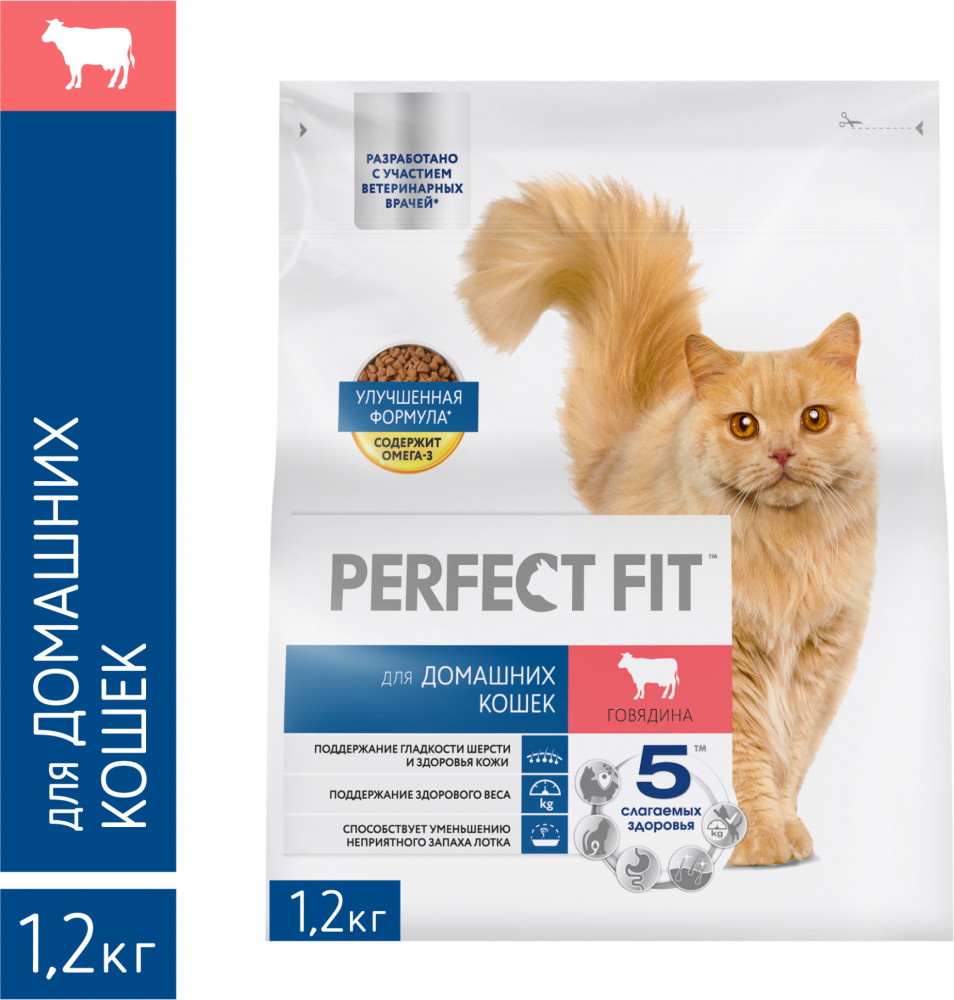 Perfect Fit Корм сухой для домашних кошек «Говядина»