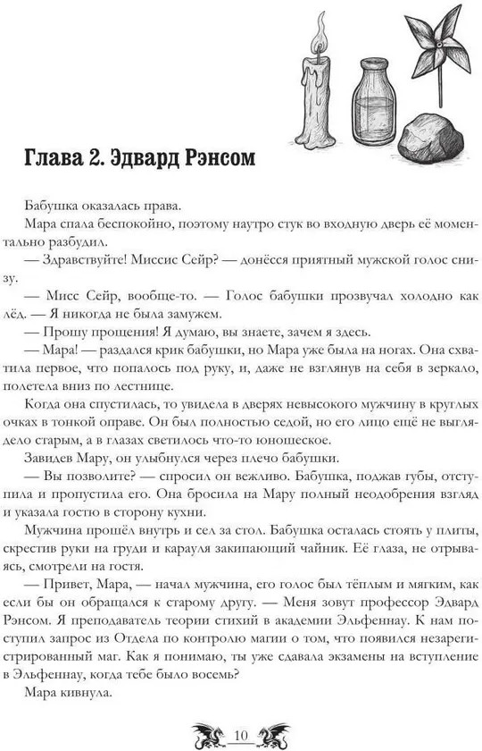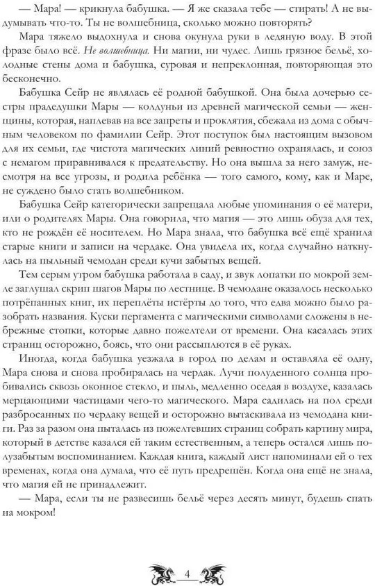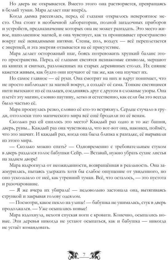 Мара Сейр — точно не волшебница. По крайней мере, так утверждает её бабушка. И, скорее всего, бабушка права: Маре уже шестнадцать, и прошло семь лет с тех пор, как она провалила вступительные экзамены в магическую академию Эльфеннау. Но, несмотря ни на что, Мара изо дня в день пытается сотворить волшебство. И однажды у неё это получается. После этого на пороге их дома появляется загадочный профессор из академии, обещая подготовить её к школе за пять дней. Но это только начало пути.