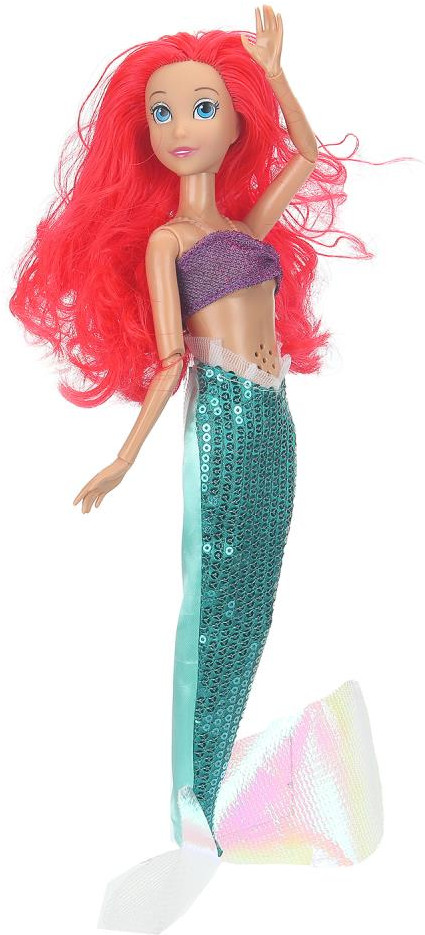 Кукла «Ариэль» станет прекрасным подарком для вашей принцессы. Прекрасная морская принцесса выглядит в точности как в известном мультфильме: она одета в фиолетовый лиф и текстильный зелёный хвост, украшенный сверкающими пайетками. Одежду легко снять и надеть. С такой модной куклой девочке будет интересно и весело играть: благодаря тому, что руки и ноги куклы подвижны, им можно придать любое положение. У Ариэль длинные красивые волосы яркого цвета, которые хозяйка куклы может заплетать в разные причёски. Детально проработанный дизайн игрушки вдохновит девочку на новые игровые сюжеты. |