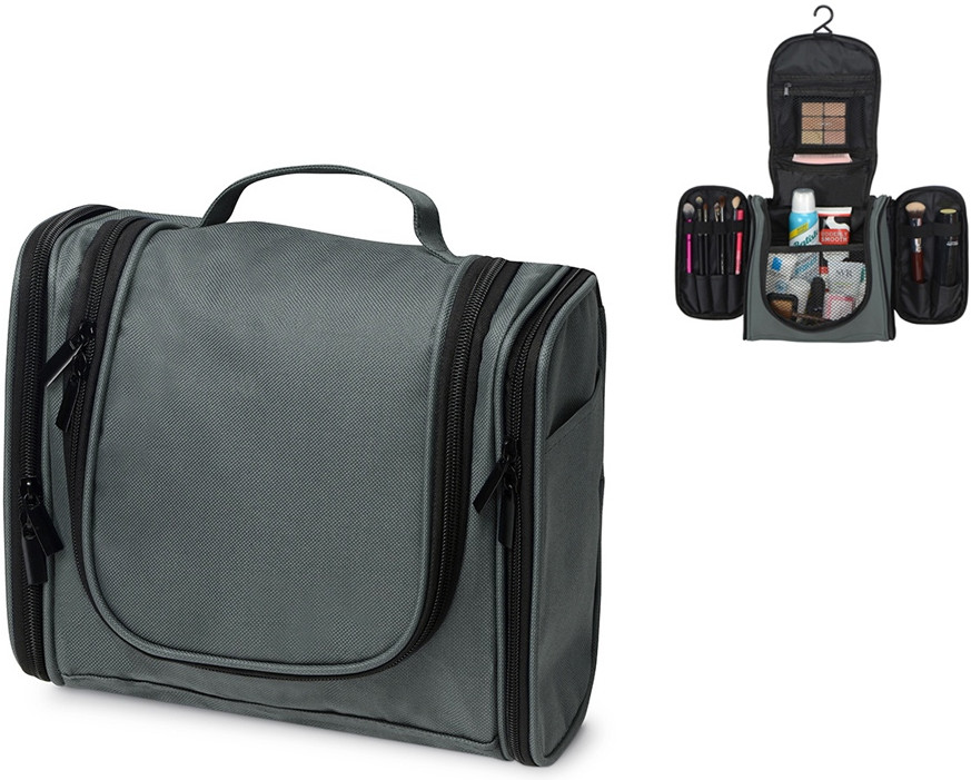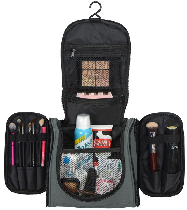 • снабжен ручкой для удобства переноски и крючком, позволяющим подвесить несессер в ванной комнате гостиничного номера или любом другом месте.