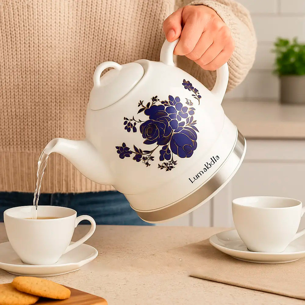 Керамический электрочайник LumaBella — стиль, надежность и комфорт в вашей кухне. Электрочайник LumaBella — это удачное сочетание утонченного дизайна, функциональности и надежности. Благодаря корпусу из высококачественной керамики чайник не только устойчив к высоким температурам, но и экологически безопасен, не выделяет вредных веществ и не влияет на вкус воды.