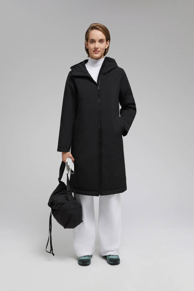 Внутри изделия высокотехнологичный искусственный утеплитель, который отличается легкостью, а благодаря особой структуре из множества тончайших волокон отлично согревает. Легкий и прочный подклад обработан антибактериальной и полиуретановой пропитками, которые предотвращают развитие микрофлоры и продлевают срок службы изделия. Несъемный капюшон защитит от ветра и осадков. Предусмотрены функциональные карманы. Пальто застегивается на центральную молнию.