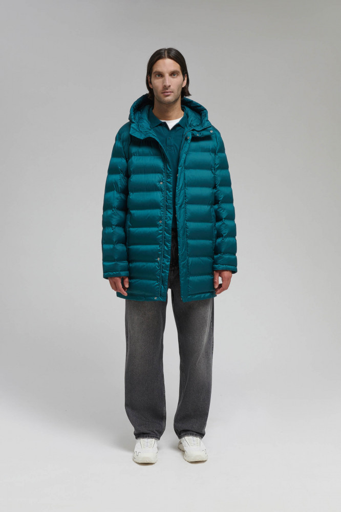 Утепленное стеганое полупальто выполнено из технологичной ткани с водоотталкивающей пропиткой. Материал надежно защищает от дождя, устойчив к загрязнениям и отличается износостойкостью. Внутри изделия высокотехнологичный искусственный утеплитель Down fill, который по своим теплоизоляционным свойствам идентичен натуральному пуху, при этом гипоаллергенен, более легкий, не сбивается в комки и равномерно распределяется внутри изделия даже после стирки. Пуходержащая пропитка предотвращает миграцию искусственного пуха через ткань. Модель прямого кроя дополнена съемным капюшоном с утяжками. По бокам предусмотрены функциональные карманы. Застегивается на молнию и кнопки.