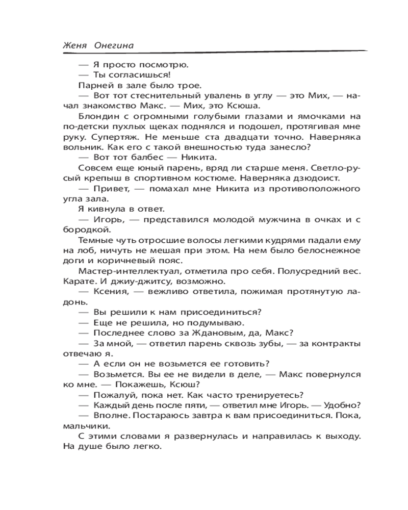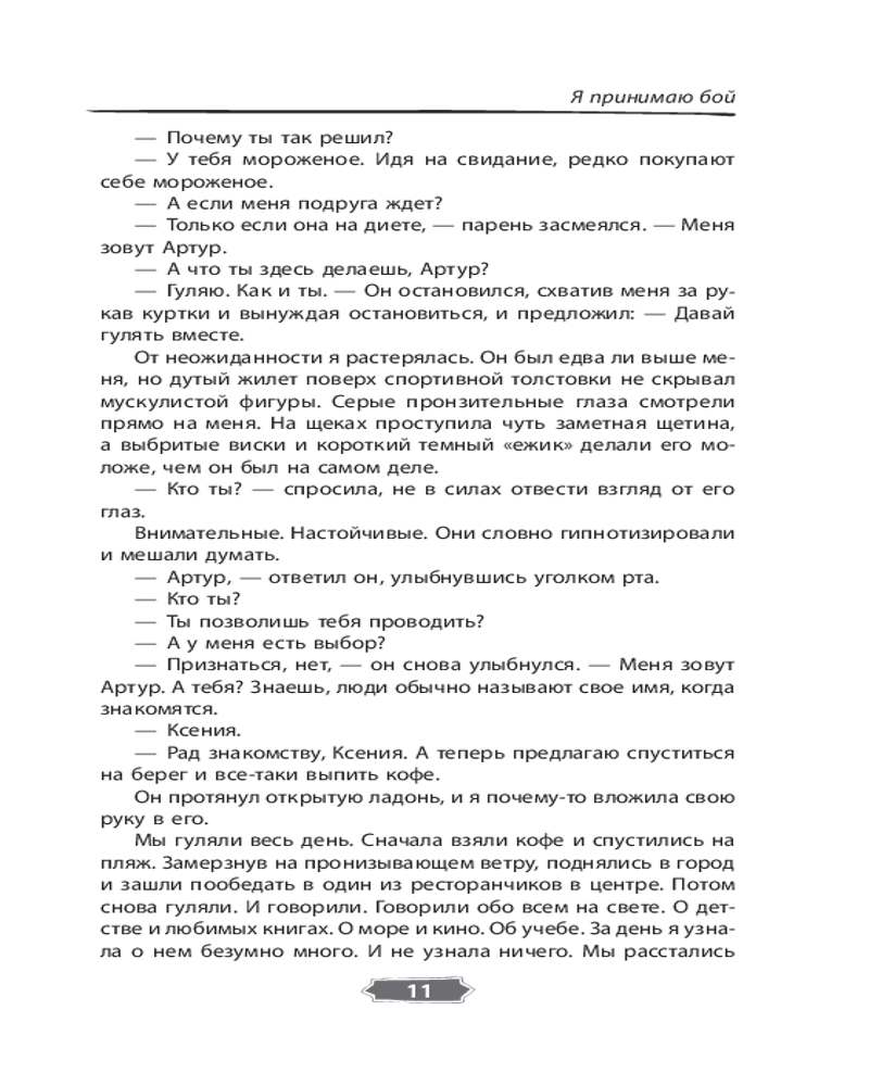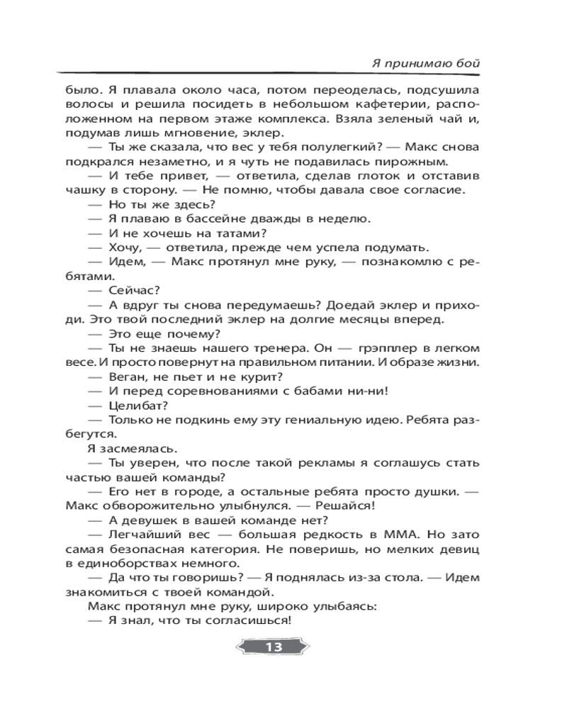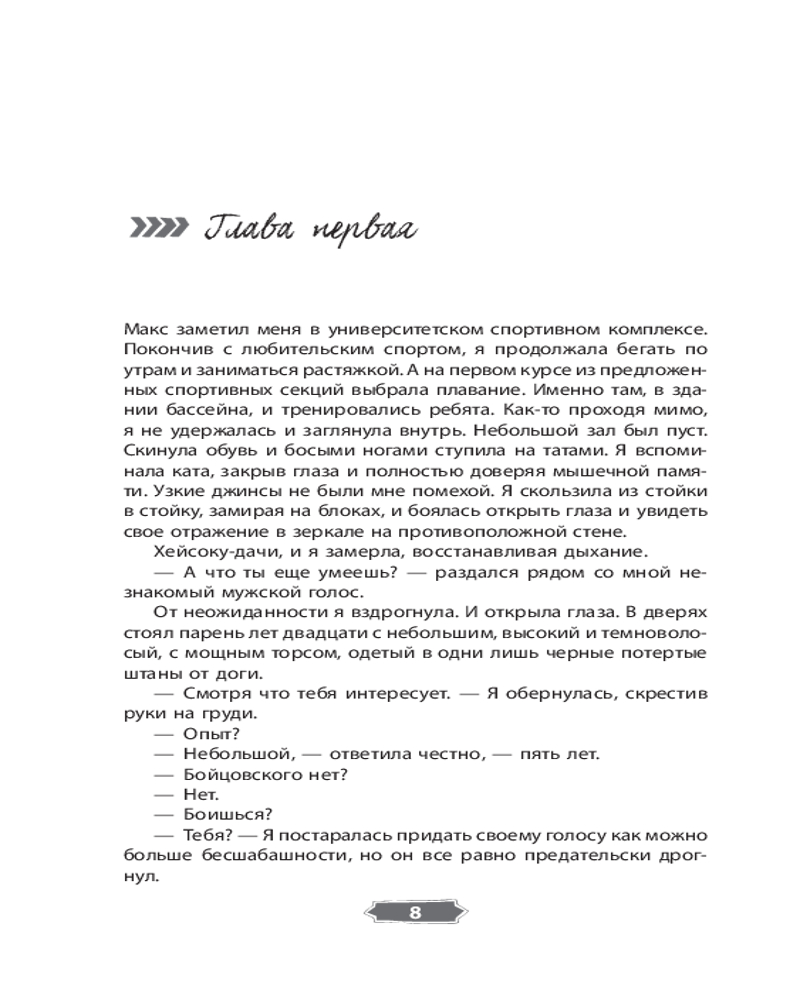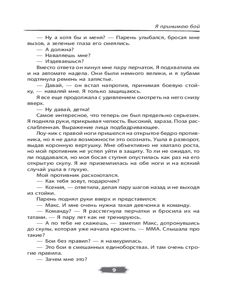 Серия: История моей любви Что вы знаете о поединках ММА? Правда ли, что это настоящие бои без правил? Ксения Раткевич ушла из любительского спорта, выиграв первые в своей жизни соревнования карате. Спустя три года судьба сталкивает ее с командой ребят, готовых попытать счастье на турнире ММА. Артур Жданов — человек, не склонный идти на компромисс, опытный боец ММА и тренер этой команды. Его главным правилом является никогда не смешивать личные отношения и спорт. Смогут ли они найти общий язык и привести команду к победе? Чтобы достигнуть своей мечты, Максиму Русланову нужно всего лишь выиграть титульный бой и попасть в высшую лигу ММА. Но встреча с Верой Измайловой и ее братом заставит Максима искать ответ на главный вопрос. Почему он снова и снова готов выходить на татами? |