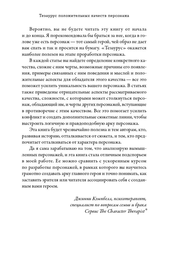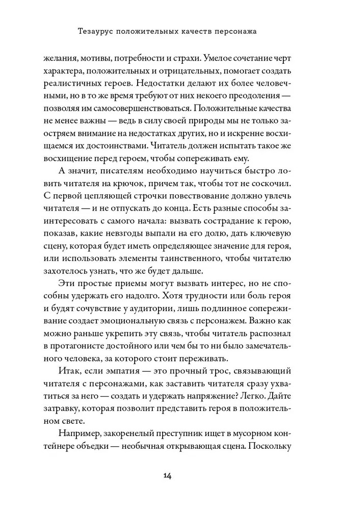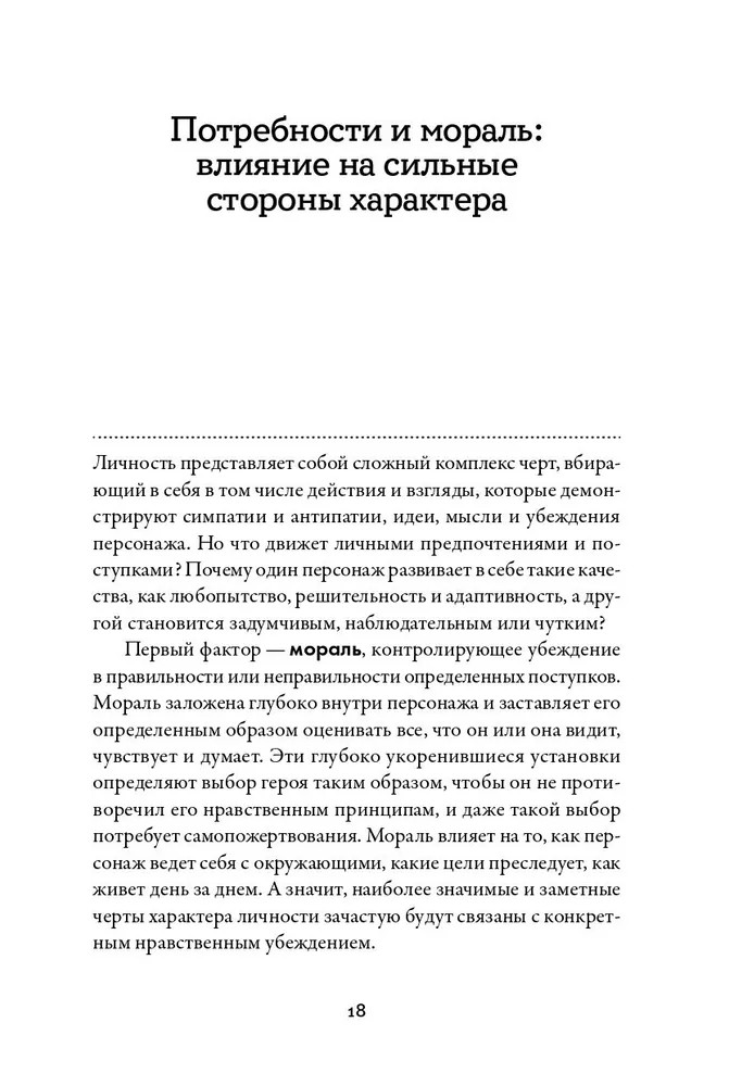 Создать достоверного, убедительного в поступках персонажа — нетривиальная и важнейшая задача для писателя и сценариста: только мощные, глубокие персонажи способны вызвать эмоциональный отклик у читателя и зрителя. Анджела Акерман и Бекка Пульизи, признанные эксперты по писательскому мастерству, решили обобщить свой опыт и предлагают авторам практическое руководство по конструированию многогранных, реалистичных, запоминающихся персонажей, фокусируясь на положительных качествах и способах их проявления — через действия, мысли, эмоции и взаимоотношения с другими персонажами. Это руководство — незаменимый инструмент для любого автора, стремящегося вдохнуть жизнь в своих персонажей, сделать их истории убедительными и незабываемыми.  |
