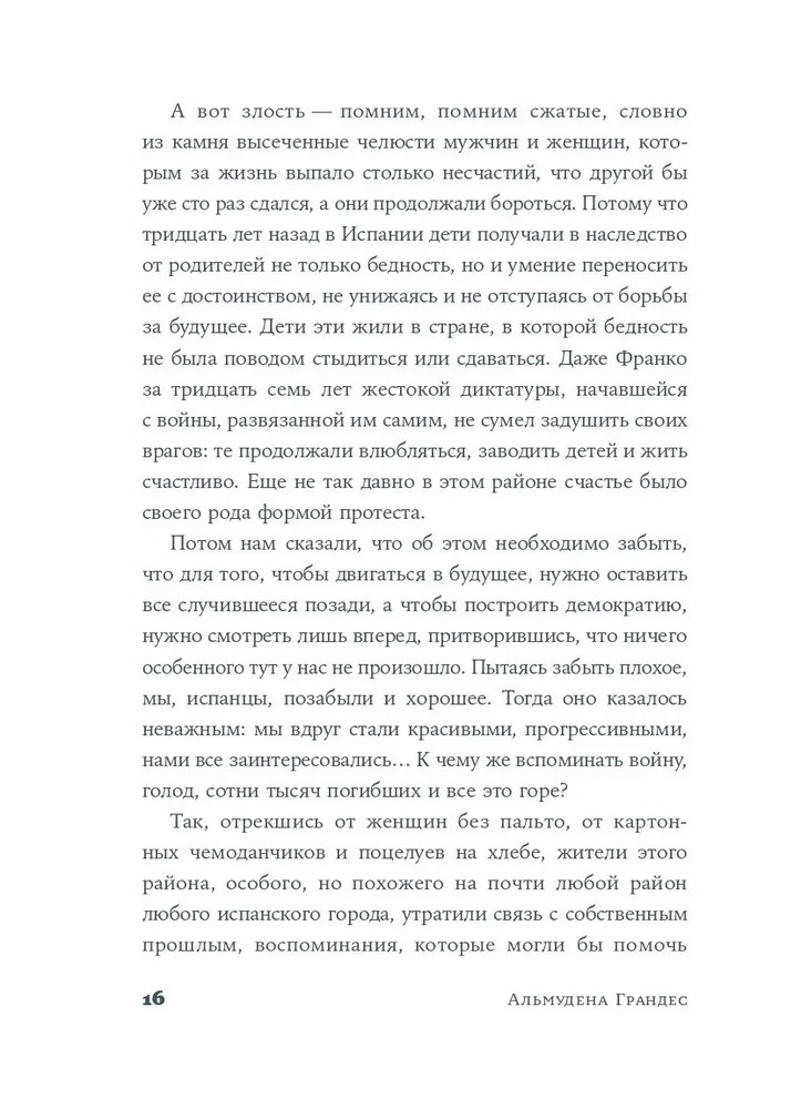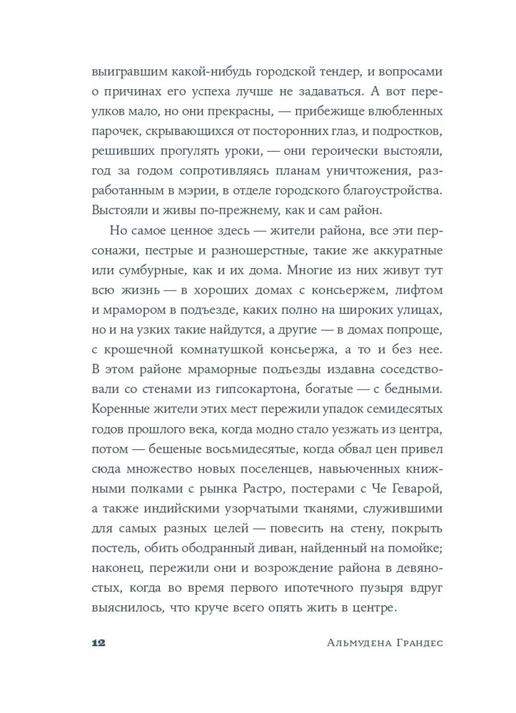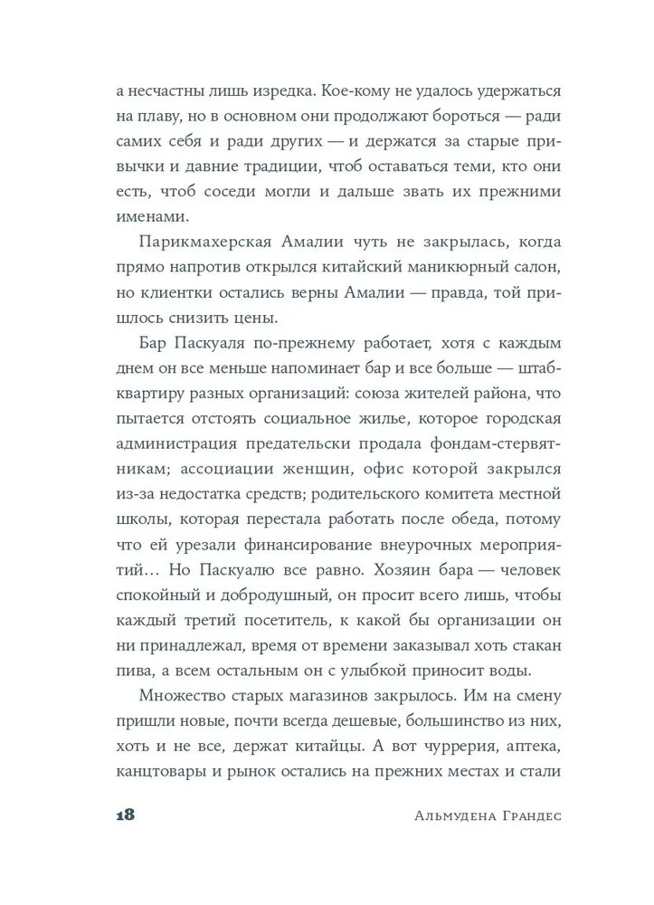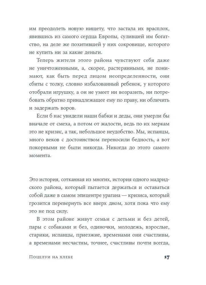 Серия: Имя собственное: новая классика Этот район Мадрида похож на многие другие. На широких и узких улицах, в больших и маленьких квартирах живут мужчины и женщины, чьи судьбы переплелись в водовороте экономического кризиса. Он угрожает разрушить привычный уклад жизни, но испанцы никогда не были покорны судьбе. Обитатели района держатся за давние традиции и принципы: делиться последним, сохранять человечность и не позволять системе сделать из тебя жертву. |