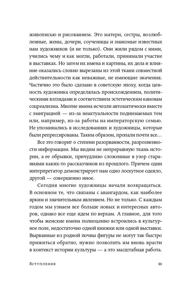 Много ли мы знаем великих российских художниц? Софья Сухово-Кобылина, Елена Поленова, Ольга Розанова, Варвара Бубнова и многие другие талантливые женщины ни в чем не уступали современникам — Илье Репину, Виктору Васнецову, Константину Коровину, Исааку Левитану. Как вышло, что выдающиеся художницы не получили той славы, которой были достойны? Каким был их путь к большому искусству, что их вдохновляло, а что мешало продвигаться в творчестве? Как переплетались их судьбы с бурной эпохой? |