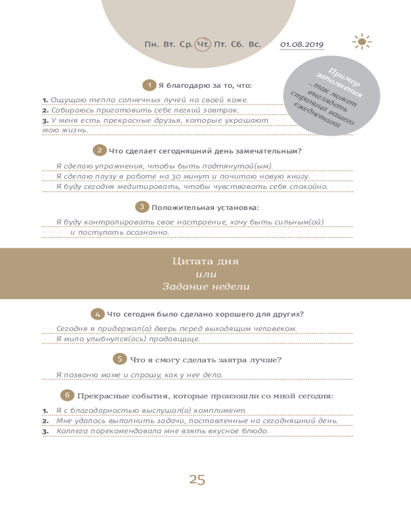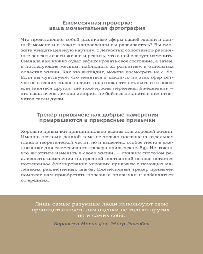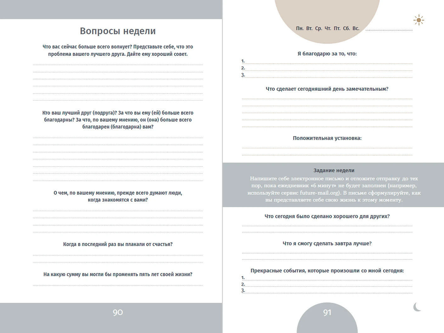 Серия: Ежедневники «6 минут» Счастье не является результатом везения или случайного стечения обстоятельств. Стать счастливым помогают правильные установки и образ мыслей. 3 минуты утром и 3 минуты вечером — столько времени займет выработка полезных привычек, которые сделают вашу жизнь осознаннее, гармоничнее, а значит — счастливее. |