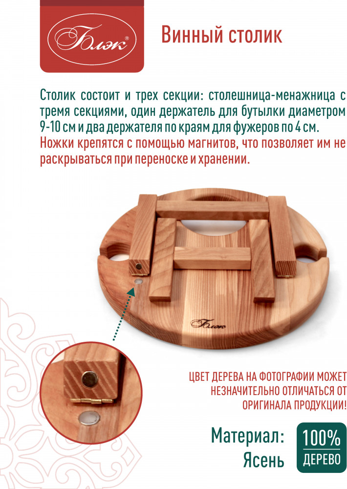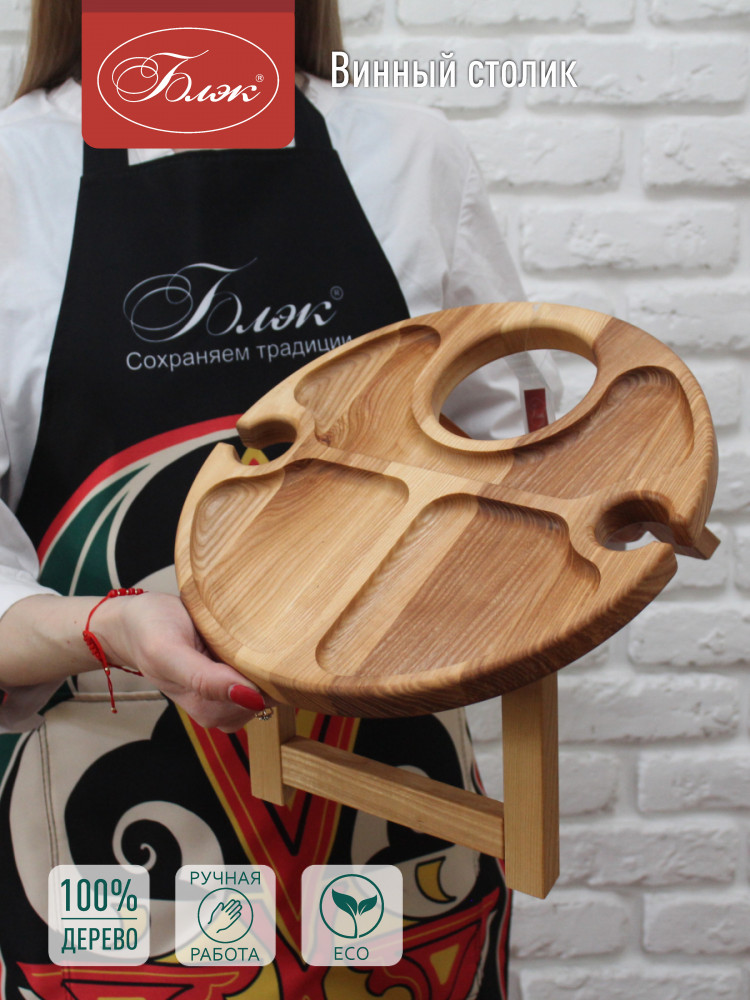 Блэк Винный столик из дерева с менажницей