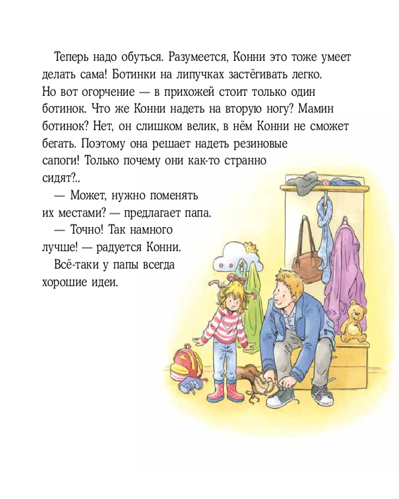 Серия: Лучший друг — Конни Конни уже большая и многое умеет делать сама! Она сама одевается, готовит завтрак, ходит в детский сад, считает, рисует и помогает маме с покупками. Иногда у неё не всё получается идеально, но Конни не сдаётся! Эта книга учит детей не бояться ошибок, развивает уверенность в себе и желание пробовать новое. |