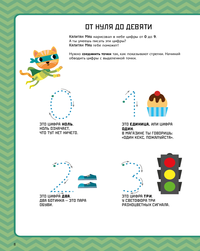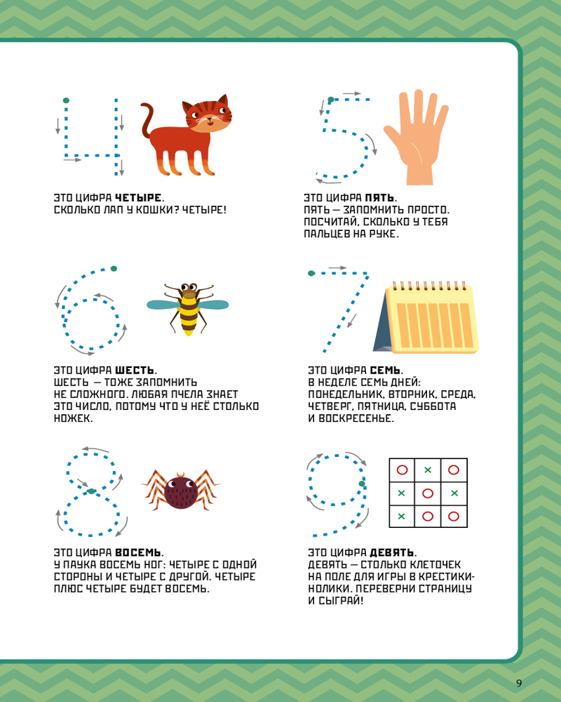 • весёлый счёт от 0 до 9, в котором каждая цифра раскрывается через образы и сравнения из повседневной жизни;