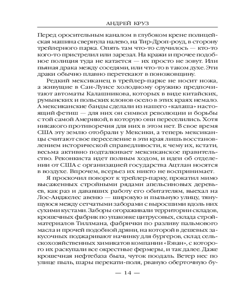 | Андрей Круз — российский писатель-фантаст, автор произведений в жанре фантастика и хоррор. Родился в городе Калинин (ныне Тверь). С 13 лет стал заниматься боксом, выступал на соревнованиях республиканского уровня в полутяжелом весе, занимал призовые места. Увлекался кикбоксингом. Проходил службу в рядах Советской армии. Получил высшее образование. Занимался частным предпринимательством. Покинул Россию в начале 2000-х годов. В настоящее время Андрей Круз постоянно проживает в Панаме... |