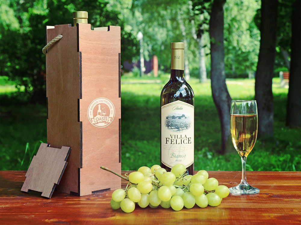 Подарочный пенал для упаковки бутылок, изготовлен из экологически чистых материалов. В него легко можно поместить винную или любую другую бутылку. Внутри пенала для алкоголя находится деревянная стружка, которая служит как для декора, так и для сохранности подарка. Деревянная коробка-пенал подчеркнет эстетическую значимость вашего сувенира. Она проста в использовании, крышка упаковки легко закрывается и надежно фиксирует бутылку. Таким образом, ваш презент переходит из обычного подарка в разряд премиум и приобретает благородный и презентабельный вид. Материал пенала: тонированная шлифованная березовая фанера толщиной 6 мм. Внутренний размер — 9,5×10×33 см, внешний — 10,7×11,2×34,2 см.