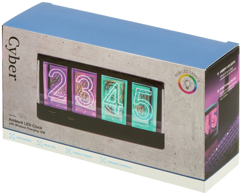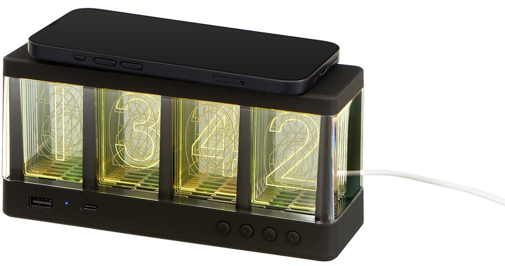 Часы с подсветкой и беспроводной зарядкой «Cyber»-25% +555