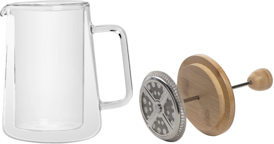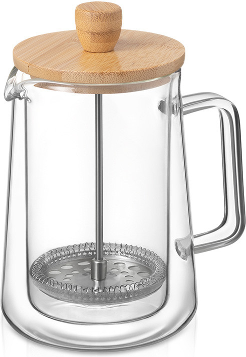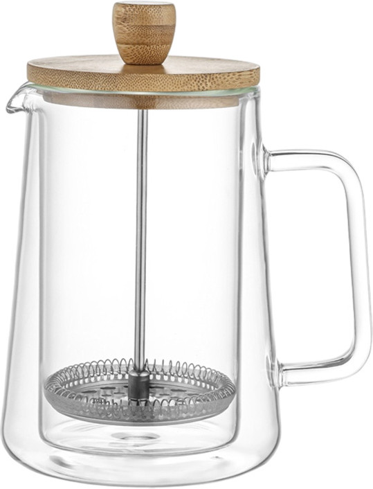 • бамбуковая крышка — натуральный, экологичный материал с красивой текстурой, который гармонично дополняет стиль френч-пресса;