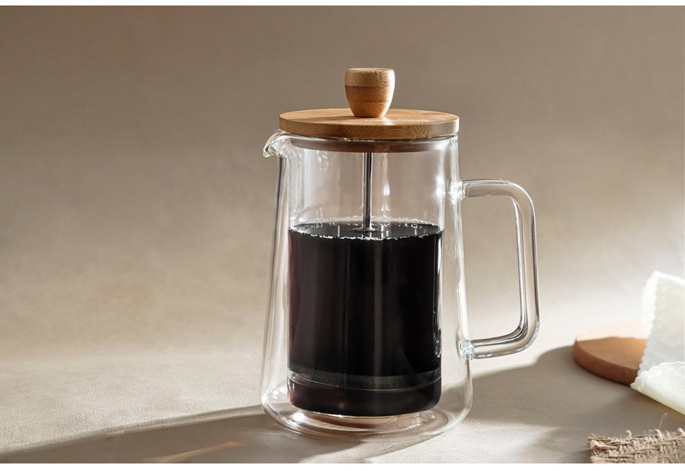Френч-пресс с двойными стенками не только удобно использовать, но и приятно держать в руках. Он станет стильным элементом вашей кухни и подарит незабываемый вкус свежезаваренного напитка каждый день!