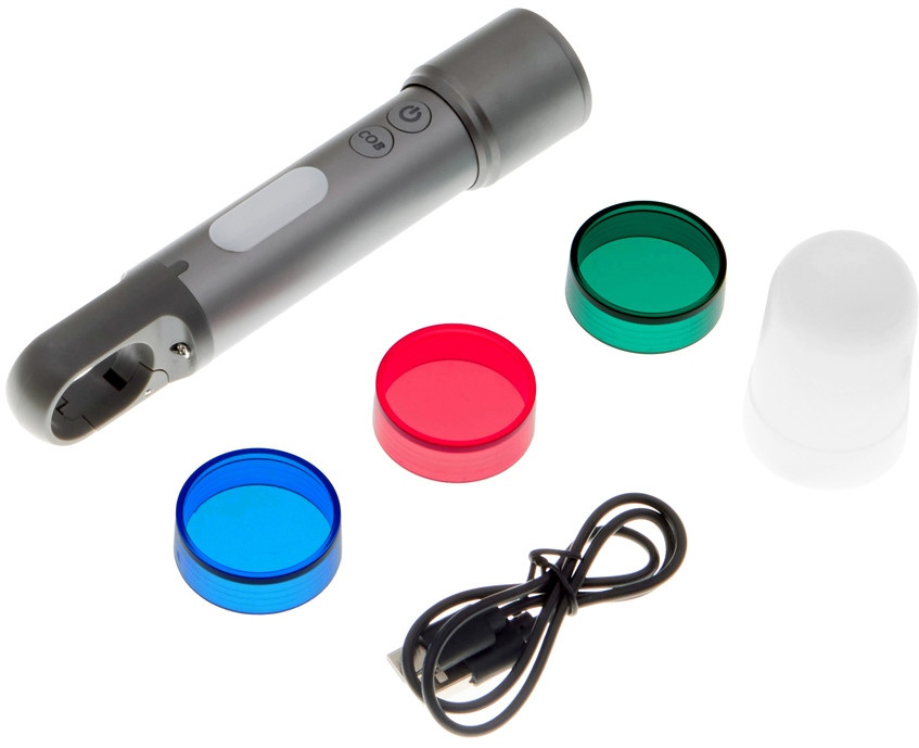 Фонарь «Vortez» имеет компактный и прочный корпус из алюминиевого сплава, который обеспечивает долговечность и защиту от внешних воздействий (IPX4). Встроенная литий-ионная батарея емкостью 1200 мАч гарантирует длительную работу: до 3 часов в режиме SMD и до 10 часов в режиме COB. Зарядка осуществляется через порт USB Type-C, что делает процесс быстрым и удобным. Для удобства использования предусмотрен прочный встроенный карабин. Фонарь прост в управлении: все функции доступны через две кнопки на корпусе. Комплект поставки включает зарядный кабель USB Type-C, инструкцию и сменные цветные насадки. Белая рассевающая насадка превращает фонарь в удобный подвесной светильник.