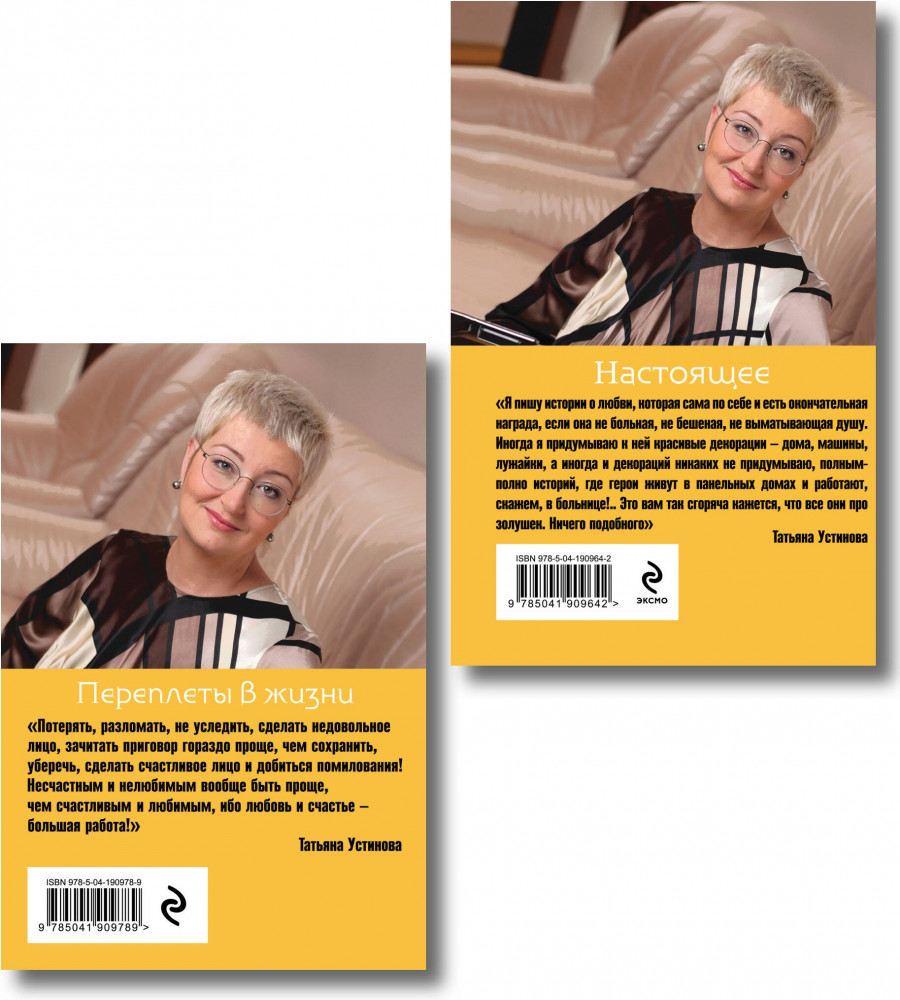 Переплеты в жизни. Настоящее. Комплект из 2 книгВ данный момент этот товар отсутствует в продаже. Возможно, у нас найдется аналогичный или похожий товар здесь. Серия: Татьяна Устинова. Первая среди лучших. Избранное (обложка) Татьяну Устинову не зря называют первой среди лучших. Конечно, прежде всего публика знает ее как автора остросюжетных романов, но мы, пожалуй, согласимся, что это скорее криминальные мелодрамы. Истории, в которых, как завещал классик, и жизнь, и слезы, и, конечно, любовь — к тому, кто понимает тебя, к любимому делу, даже к любимому месту — если ты в этом месте живешь или работаешь. И всё по-настоящему: комическое и трагическое, трогательное и забавное, всё вперемешку. Так происходит и в рассказах Татьяны Устиновой. |