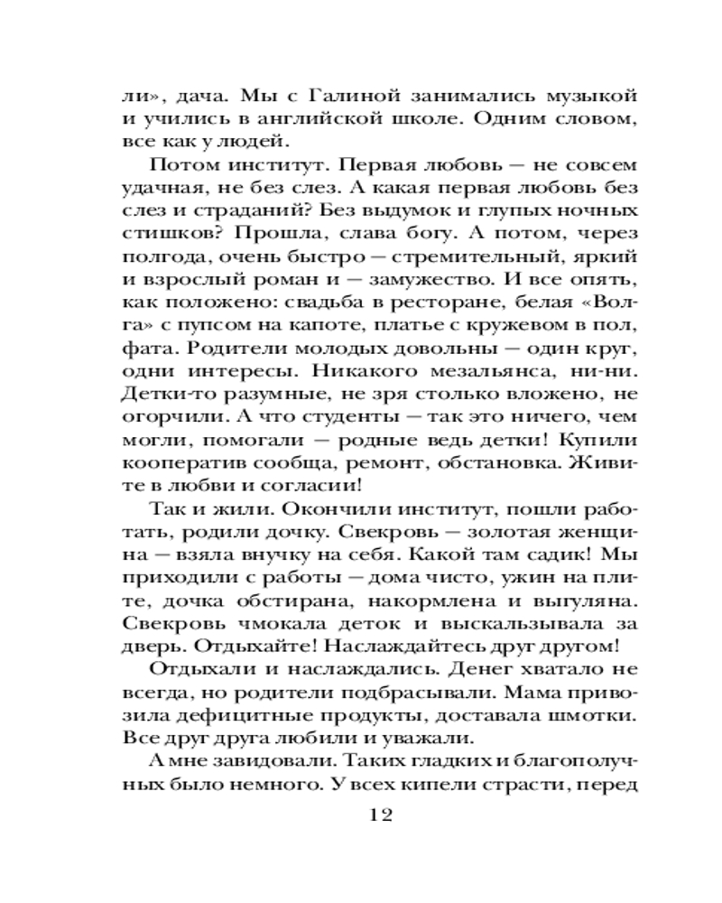 Серия: Женские судьбы. Уютная проза Марии Метлицкой. Новое оформление (обложка) Книги Марии Метлицкой можно отнести к разряду той душевной прозы, которая затрагивает самые тонкие струны человеческой души, поднимает из ее глубины невероятные чувства и дарит настоящий вихрь эмоций. Автор, как всегда, берет за основу сложную тему, но преподносит ее читательницам легко, увлекательно, со свойственной Марии неподдельной искренностью и человечностью. |