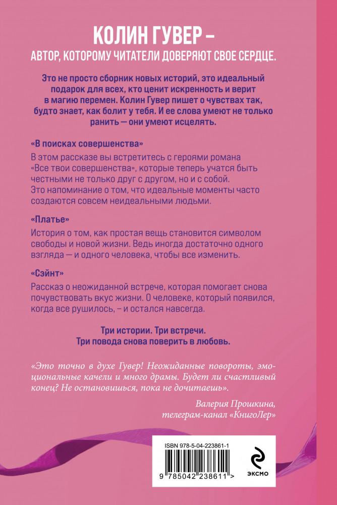 Серия: Все твои совершенства. Главные романы Колин Гувер Любовь не приходит по расписанию, но этот подарок ты получишь вовремя. Это не просто сборник новых историй любимого автора, это идеальный подарок для всех, кто ценит искренность и верит в магию перемен. Колин Гувер пишет о чувствах так, будто знает, как болит у тебя. И ее слова умеют не только ранить — они умеют исцелять. Колин Гувер — автор, которому читатели доверяют свое сердце. Более 5 000 000 000 просмотров в TikTok. |