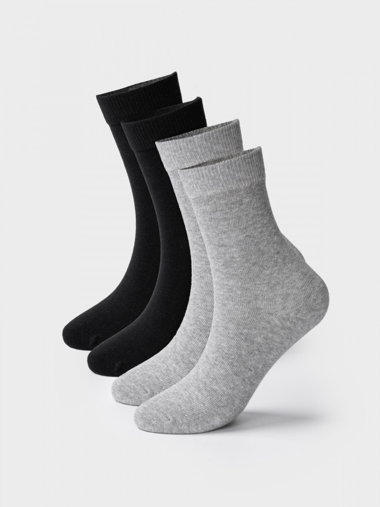 Набор носков для мальчика-подростка от PlayToday — комфорт и уверенность на каждый день. Этот комплект из 4 пар — настоящая находка для активных школьников. Универсальные цвета (тёмно-синий, серый) легко сочетаются с любой одеждой, а мягкий дышащий хлопок обеспечивает комфорт на весь день — в школе, на прогулке или в поездке. Изделия выполнены из мягкой дышащей ткани, в составе которой преобладает хлопок — идеальный материал для повседневной носки. Такие носки не вызывают раздражения, обеспечивают циркуляцию воздуха и помогают избежать перегрева стоп. Эластан в составе позволяет изделиям легко тянуться и возвращать форму даже после стирки при 30°C. Набор отлично подойдёт для повседневной носки в школу — и под классическую обувь, и под кроссовки. Это универсальный комплект для мальчиков 8–16 лет. Носки не сползают, не перекручиваются в обуви и обеспечивают комфорт даже при активной ходьбе. Этот набор носков от PlayToday — базовый, нужный и точно любимый вариант, когда важны комфорт, практичность и аккуратный внешний вид каждый день.