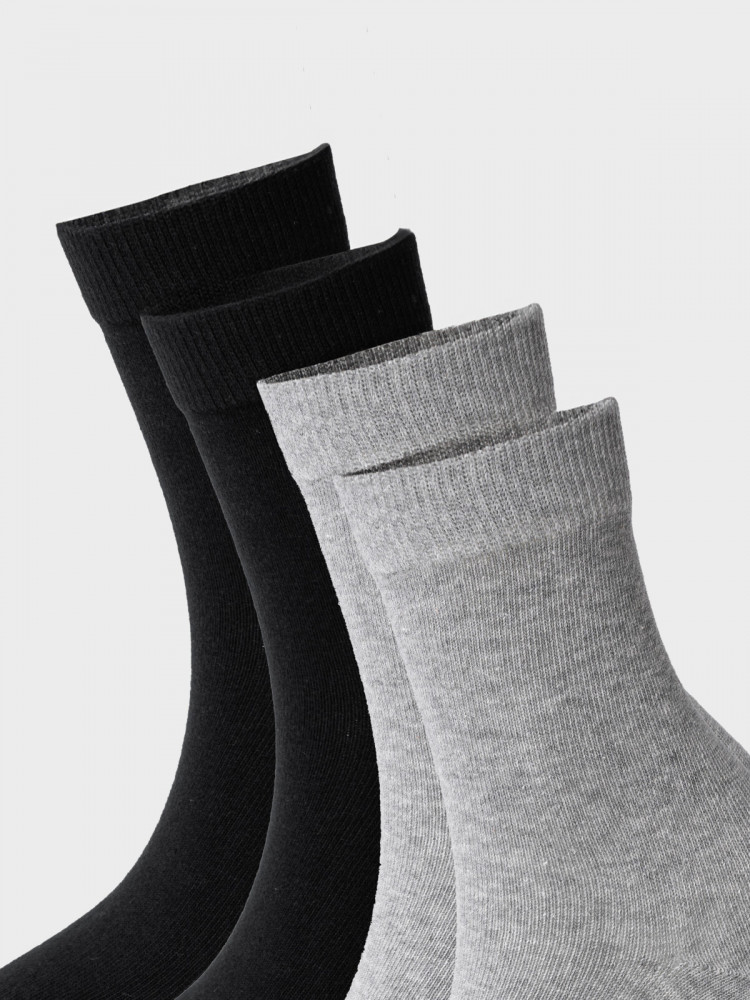 Набор носков для мальчика-подростка от PlayToday — комфорт и уверенность на каждый день. Этот комплект из 4 пар — настоящая находка для активных школьников. Универсальные цвета (тёмно-синий, серый) легко сочетаются с любой одеждой, а мягкий дышащий хлопок обеспечивает комфорт на весь день — в школе, на прогулке или в поездке. Изделия выполнены из мягкой дышащей ткани, в составе которой преобладает хлопок — идеальный материал для повседневной носки. Такие носки не вызывают раздражения, обеспечивают циркуляцию воздуха и помогают избежать перегрева стоп. Эластан в составе позволяет изделиям легко тянуться и возвращать форму даже после стирки при 30°C. Набор отлично подойдёт для повседневной носки в школу — и под классическую обувь, и под кроссовки. Это универсальный комплект для мальчиков 8–16 лет. Носки не сползают, не перекручиваются в обуви и обеспечивают комфорт даже при активной ходьбе. Этот набор носков от PlayToday — базовый, нужный и точно любимый вариант, когда важны комфорт, практичность и аккуратный внешний вид каждый день.