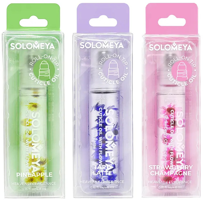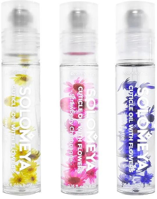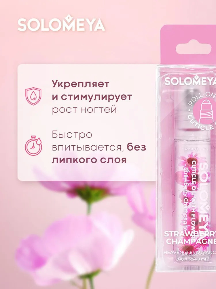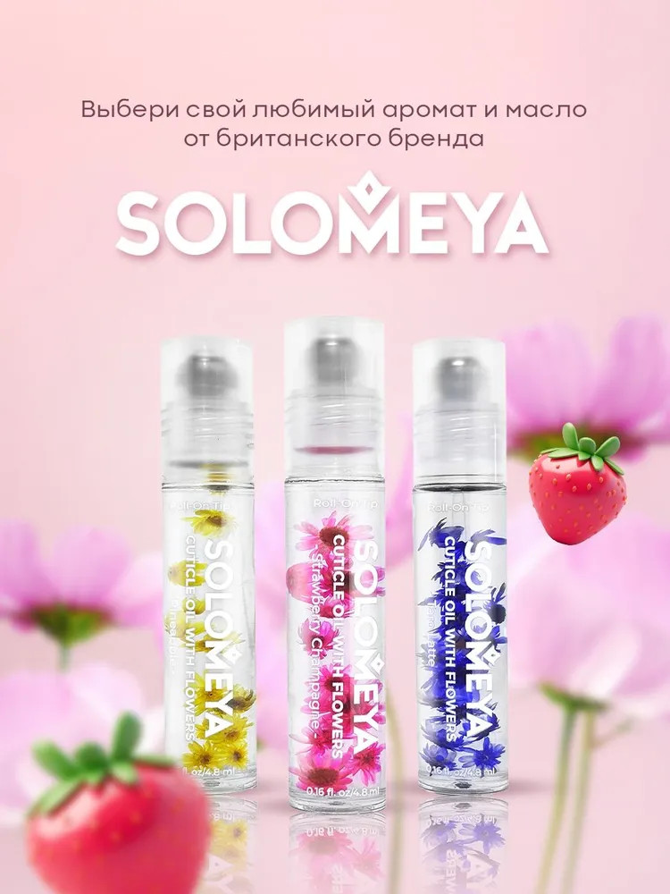 Solomeya Масло для кутикулы с роликовым аппликатором и цветами «Strawberry Champagne. Клубничное шампанское»