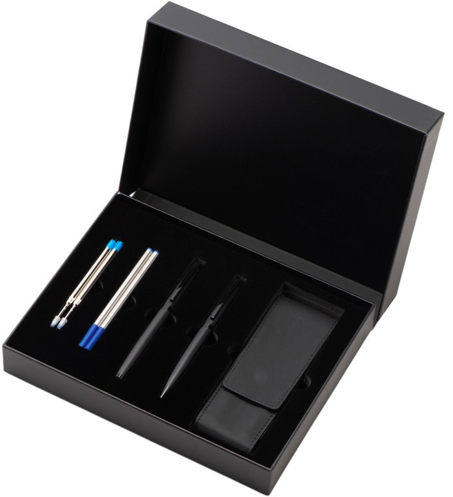Lettertone Подарочный набор ручек со сменными стержнями «Dumas»новинка В данный момент этот товар отсутствует в продаже. Возможно, у нас найдется аналогичный или похожий товар здесь. Если вы ищете премиальный и статусный подарок, то этот подарочный набор от бренда Lettertone для вас! Качество видно в каждом элементе. В набор входят шариковая ручка и роллер. Швейцарский пишущий узел Premec и немецкие чернила Dokumental обеспечивают мягкое и плавное письмо. Корпус каждой ручки имеет анодированный слой, благодаря которому гравировка получается с зеркальным эффектом.В набор входит также пенал для двух ручек, который также можно брендировать. |