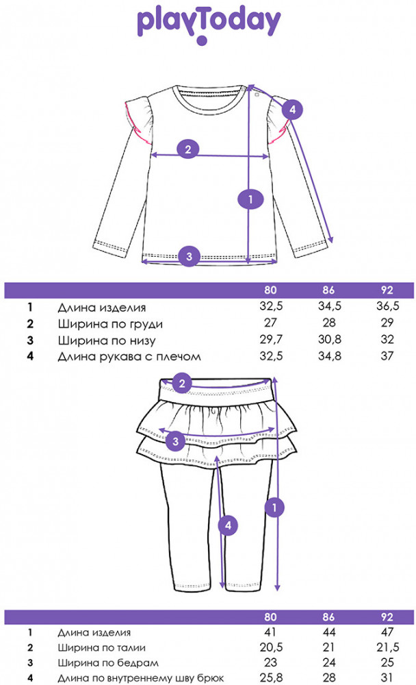 Детский трикотажный комплект для девочки от PlayToday — удобный, милый и стильный. В нём малышке будет комфортно в садике, дома и на прогулке. Мягкий трикотаж бережно касается кожи, а практичный крой даёт полную свободу движений. Преимущества модели: застёжка на кнопки на плече — легко надеть и снять; мягкий трикотаж с эластаном — тянется и дышит, обеспечивая комфорт; милый дизайн с аккуратным принтом — создаёт нежный образ; длинные рукава — отлично подходят для прохладного времени года; эластичный пояс на резинке — удобная посадка без давления; мягкий трикотаж — комфорт во время игр и сна; облегающий крой — не мешает движениям, подходит для активных малышек. Этот детский комплект из трикотажа станет базой гардероба девочки. Лонгслив и легинсы можно носить как вместе, так и отдельно, создавая разные образы.