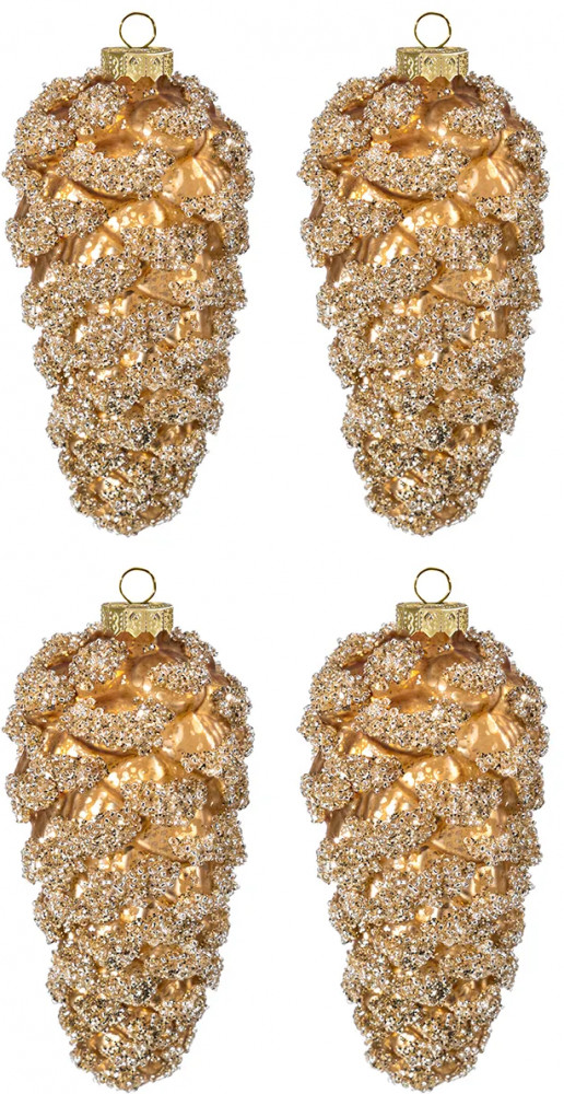 Набор 4 новогодних игрушек от бренда Elan Gallery «Шишки» с основанием серебряного цвета украсит вашу ёлочку и создаст праздничную атмосферу для взрослых и детей! Выполнены из стекла. Размер каждой шишечки — 6×11,7 см. Фигурные игрушки украшены блёстками. Подвесные фигурки с глиттером подойдут в роли елочного украшения или интерьерного декора. Блестящие украшения можно использовать для создания декоративных композиций и повесить на дверь, окно и живые ёлки во дворе. Каждое изделие имеет удобную петлю для подвешивания на веточку ёлки или стену. Комплект из четырёх ёлочных игрушек станет прекрасным украшением любого интерьера, вы можете создать новогоднюю композицию с различными сувенирами и еловыми ветками.