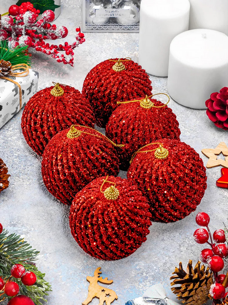 Комплект из шести ёлочных игрушек станет прекрасным украшением любого интерьера, вы можете создать новогоднюю композицию с различными сувенирами и еловыми ветками. Нарядные шары станут идеальным элементом для оформления красивых зимних композиций или чудесным подарком на праздник вашим близким. Подарочный комплект создаст хорошее настроение всей семье. Почувствуйте атмосферу чуда и волшебства, украсив дом в ожидании самого волшебного праздника года! Используйте в роли праздничного декора на вечеринке. Новогодние (рождественские) игрушки станут украшением вашей квартиры или рабочего кабинета. Интерьерный декор от бренда Элан Галерея поможет ярко отпраздновать Новый год и Рождество!