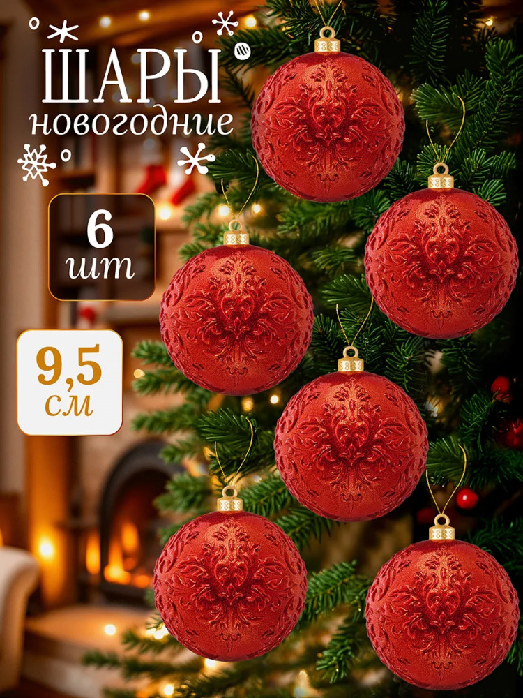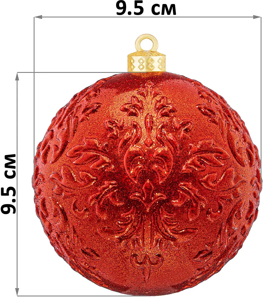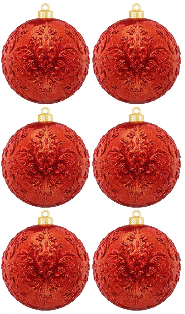 Набор 6 новогодних шаров от бренда Elan Gallery украсит вашу ёлочку и создаст праздничную атмосферу для взрослых и детей! Выполнены из полиуретана. Изделия из этого материала славятся своей лёгкостью. Диаметр каждого шара — 9,5 см. Украшены рельефными узорами и мелкими блёстками. Лёгкие подвесные шарики подойдут для использования в роли елочного украшения или интерьерного декора. Шары с глиттером можно использовать для создания декоративных композиций и повесить на дверь, окно и живые ёлки во дворе. Каждый шарик имеет удобную петлю для подвешивания на веточку ёлки или стену.