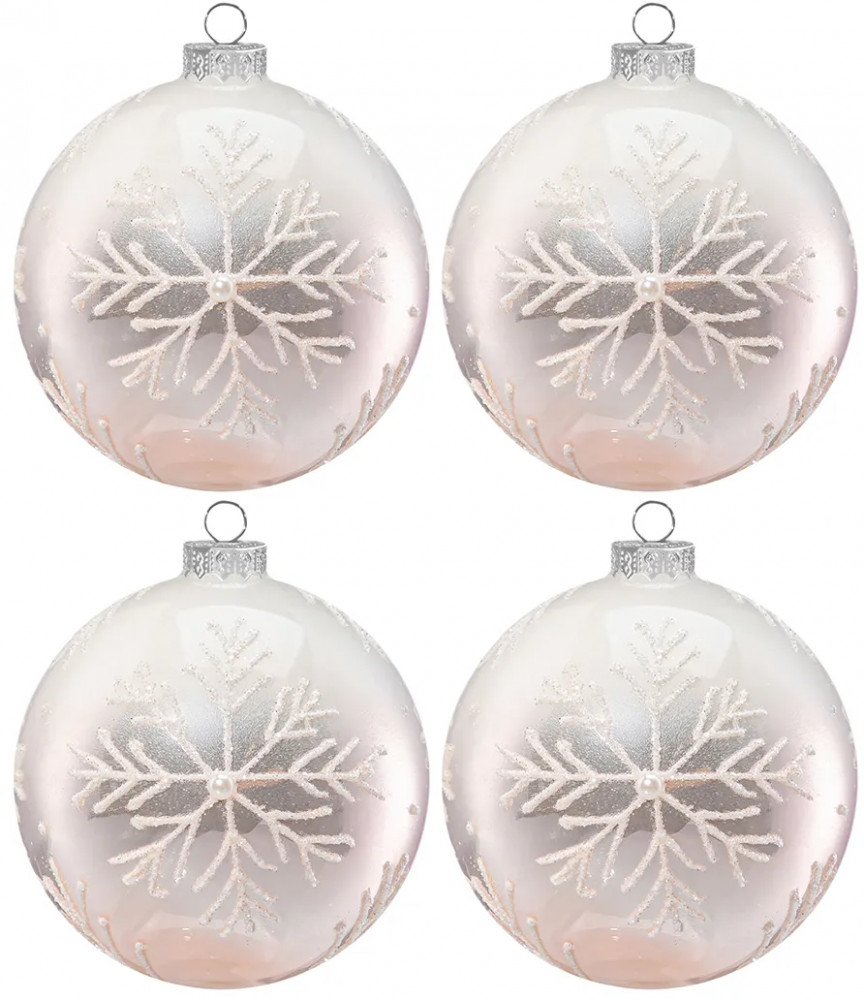 Набор 4 новогодних шаров «Снежинка» от бренда Elan Gallery украсит вашу ёлочку и создаст праздничную атмосферу для взрослых и детей! Выполнены из стекла, окрашены нежным бело-розовым градиентом. Диаметр каждого шара — 8 см. Каждая стеклянная игрушка украшена выпуклым изображением белой снежинки. Подвесные шарики подойдут в роли елочного украшения или интерьерного декора. Шары можно использовать для создания декоративных композиций и повесить на дверь, окно и живые ёлки во дворе. Каждый шарик имеет удобную петлю для подвешивания на веточку ёлки или стену. |