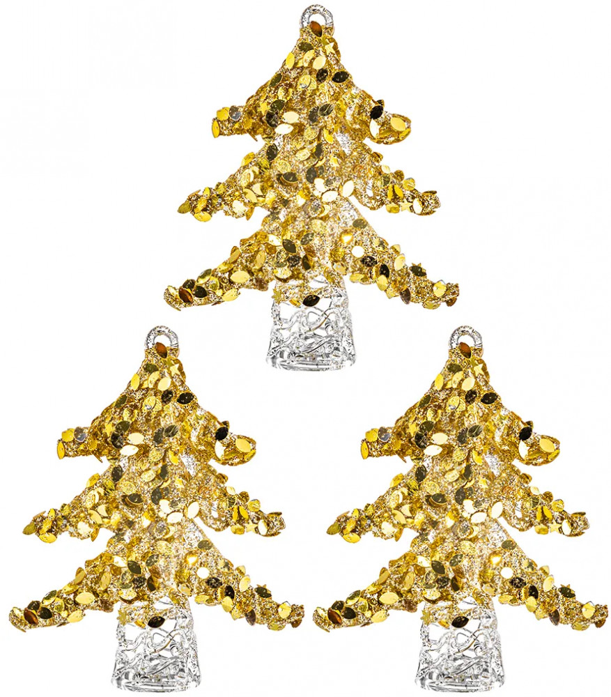Набор 3 новогодних игрушек от бренда Elan Gallery украсит вашу ёлку и создаст праздничную атмосферу для взрослых и детей! Выполнены из стекла, имеют фигурную форму. Размер каждой ёлочки — 6,6×8,4 см. Украшены золотыми блёстками. Подвесные фигурки подойдут в роли елочного или интерьерного декора. Блестящие украшения можно использовать для создания декоративных композиций и повесить на дверь, окно и живые ёлки во дворе. Каждое стеклянное изделие покрыто золотистым глиттером и имеет удобную петлю для подвешивания на веточку ёлки или стену. |
