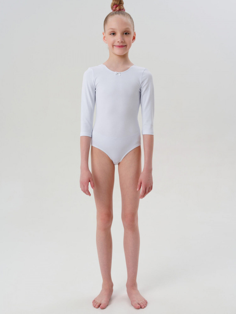 Этот спортивный купальник для девочки с рукавом 3/4 создан специально для активных тренировок: гимнастики, хореографии, акробатики и любых подвижных занятий. Плотный трикотаж с высоким содержанием хлопка приятен к телу, хорошо тянется, позволяет коже дышать и надолго сохраняет форму. Минималистичный крой без лишних швов и деталей обеспечивает максимальную свободу движений — ребёнку комфортно выполнять любые элементы, растяжки и шпагаты. Благодаря рукаву 3/4 — в нём удобно заниматься и в прохладных, и в тёплых залах. Совет по стилю: сочетайте этот белый спортивный купальник-боди с болеро, накидкой или тёплыми гетрами — для стильного и уютного образа на тренировке. Изделие сохраняет форму даже после многократных стирок. Рекомендуется машинная стирка при температуре до 30°C.
