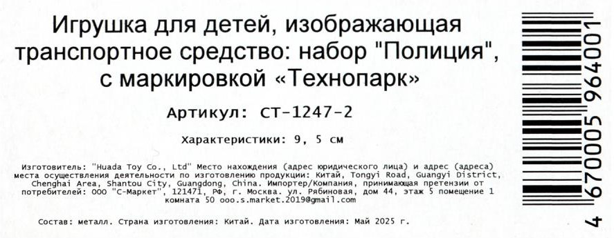 Технопарк Мотоцикл инерционный «Милиция»-35%