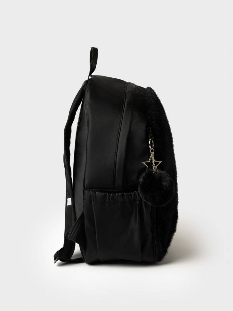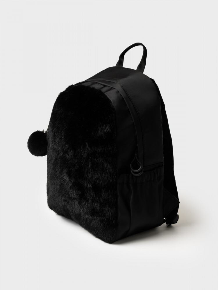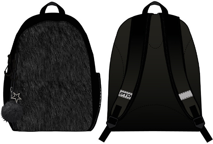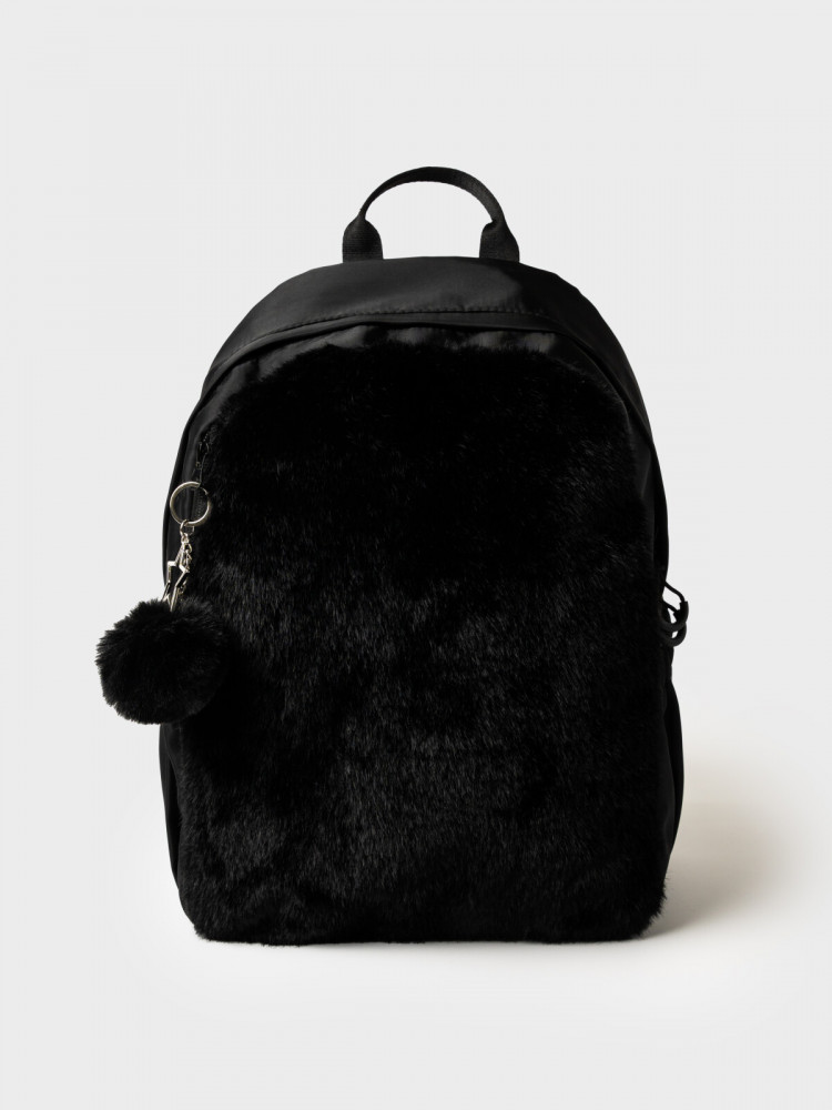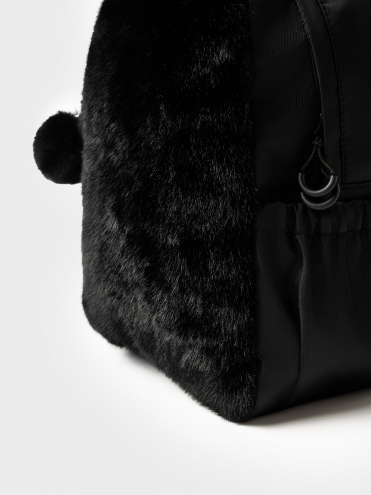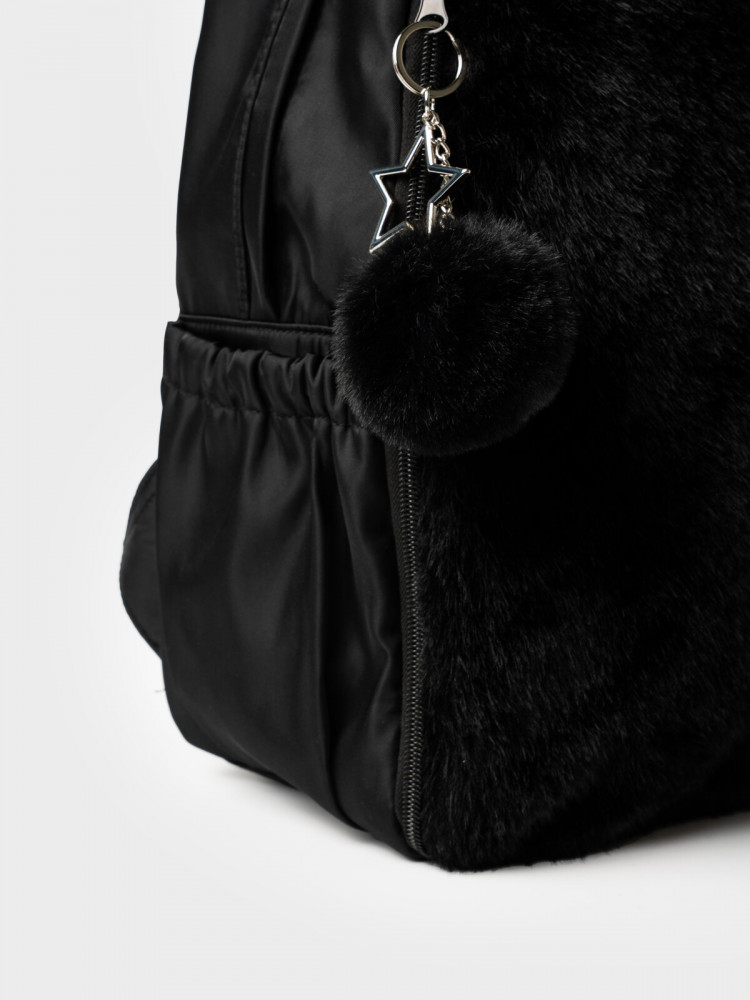 Легкий стильный меховой рюкзак с уплотненной вентилируемой спинкой для девочки подростка. Спереди рюкзак выполнены из мягкого искусственного меха, основная часть — из качественной и плотной водонепроницаемой ткани. Молния имеет защитный клапан от попадания воды. Рюкзак для школы имеет одно отделение с различными карманами внутри для систематизации школьных принадлежностей. Спереди имеется боковой кармана на молнии, который украшен трендовыми брелоками. По бокам также есть карманы. Широкие мягкие вентилируемые лямки регулируются по высоте. У рюкзака есть ручка для ношения в руке и для того, чтобы его можно было вешать на вешалку. Ранец имеет светоотражающие детали на лямках. Рюкзак в школу можно дополнить пеналом в том же дизайне.