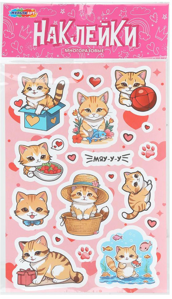 Multi Art Наклейки многоразовые «Котики»новинка -30%