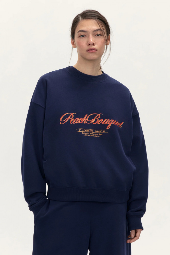 Женский свитшот свободного кроя oversize из мягкого хлопкового футера. Круглый вырез горловины в рубчик без воротника. Длинные свободные рукава с широкими эластичными манжетами в рубчик и спущенной линией плеча. Присборенный нижний край на эластичной резинке в рубчик. Толстовка в актуальных цветах этой осени с принтом-надписью. Теплая, уютная толстовка из футера для комфортных занятий спортом, прогулок на свежем воздухе и просто на каждый день. Универсальный и стильный джемпер с принтом для расслабленных и максимально удобных повседневных луков. Свитшот из футера с надписями идеально подойдет для стильных аутфитов на учебу или в офис.утфитов на учебу или в офис.