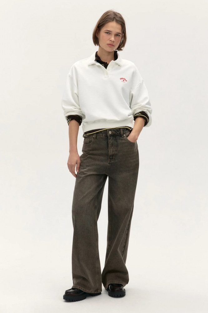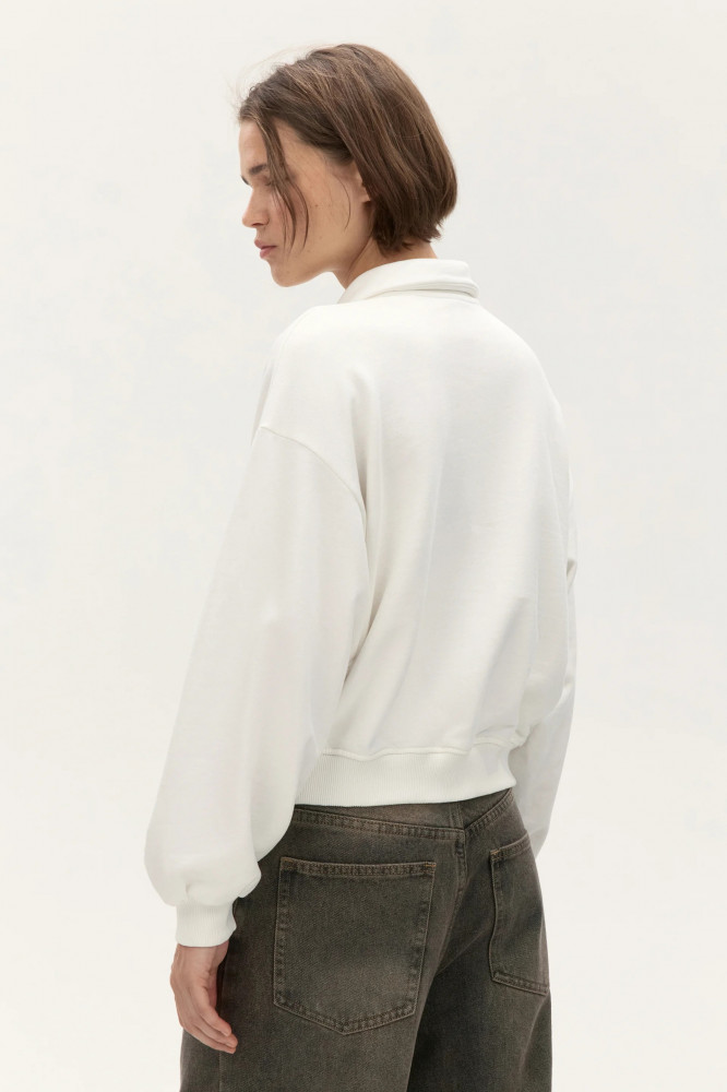 Женская толстовка свободного кроя oversize из мягкой и плотной 100% хлопковой ткани. Круглый вырез горловины с отложным воротником на пуговицах. Свободные длинные рукава с манжетами в рубчик и спущенной линией плеча. Присборенный нижний край в рубчик. Толстовка с принтом-надписью в стиле old money. Теплая, уютная и удобная женская худи с воротником для комфортных занятий спортом, прогулок на свежем воздухе и просто на каждый день. Универсальный и стильный оверсайз-джемпер с принтом для расслабленных и удобных повседневных луков. Джемпер с надписями идеально подойдет для стильных аутфитов на учебу или в офис.