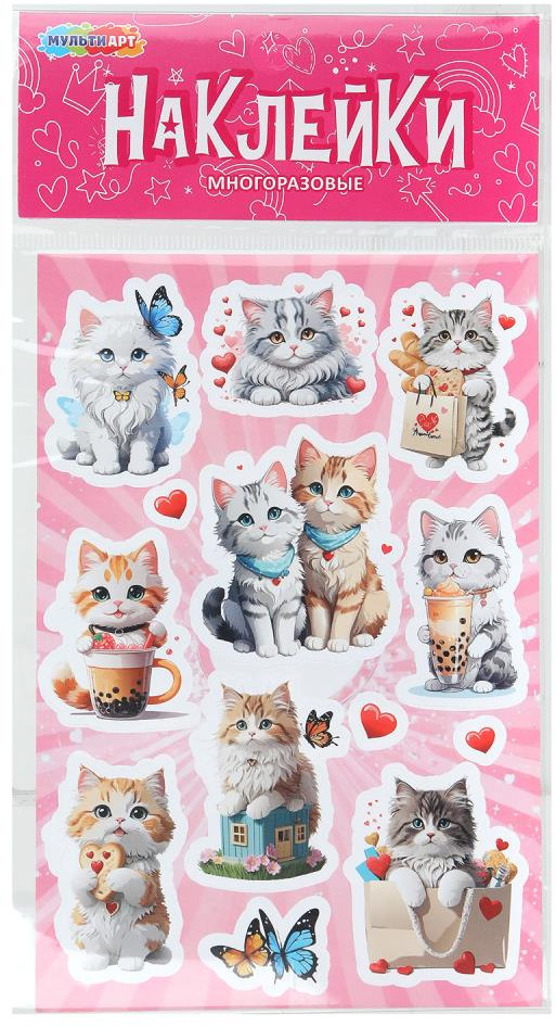 Multi Art Наклейки многоразовые «Котики»новинка -30%