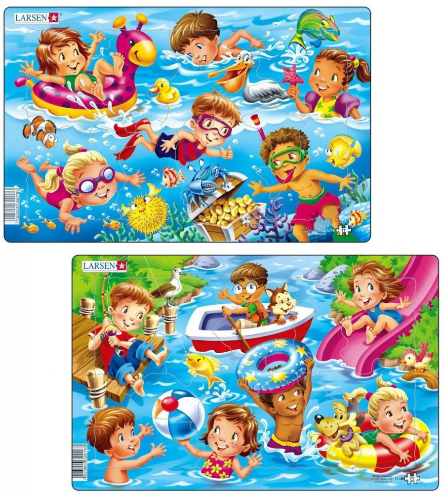 Набор красочных пазлов норвежской фирмы Ларсен обязательно понравится вашему малышу. Яркие пазлы с изображением купающихся детей привлечет внимание и позволит собрать целую картинку из разрозненных деталей. Пазл Larsen выполнен из прочного многослойного картона, детали удобно брать в ручки и соединять между собой. Игровой пазл можно использовать много раз, собирая и разбирая картинку. В наборе два пазла по 11 элементов. Размер собранного поля — 28,5×18,3 см. |